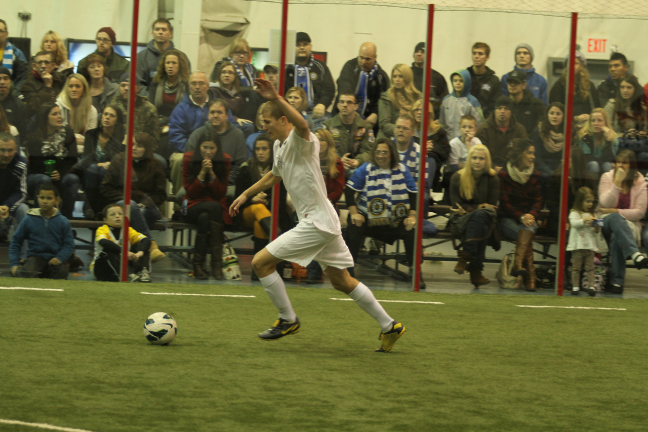 South Sound FC founding member and now owner Derek Johnson playing at the old Gig Harbor indoor soccer facility in 2011.