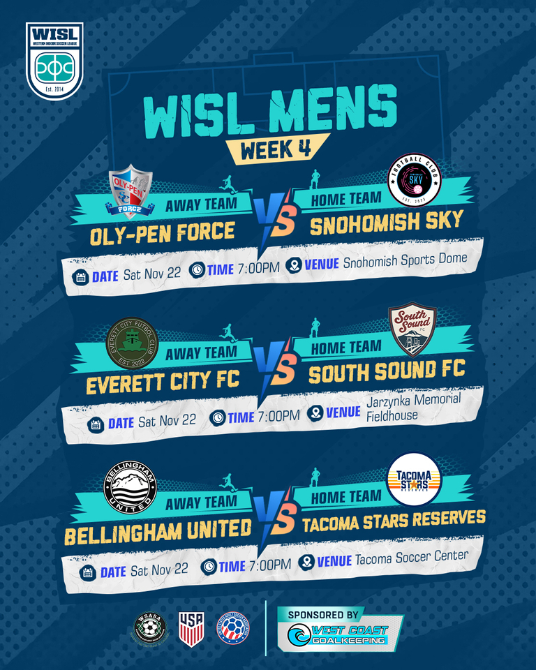 Everett City FC and South Sound FC each enter the weekend at 1–1 and in search of their second win of the season. Everett is coming off a big victory over the Snohomish Sky, while South Sound looks to bounce back following a loss to the Tacoma Stars Reserves.